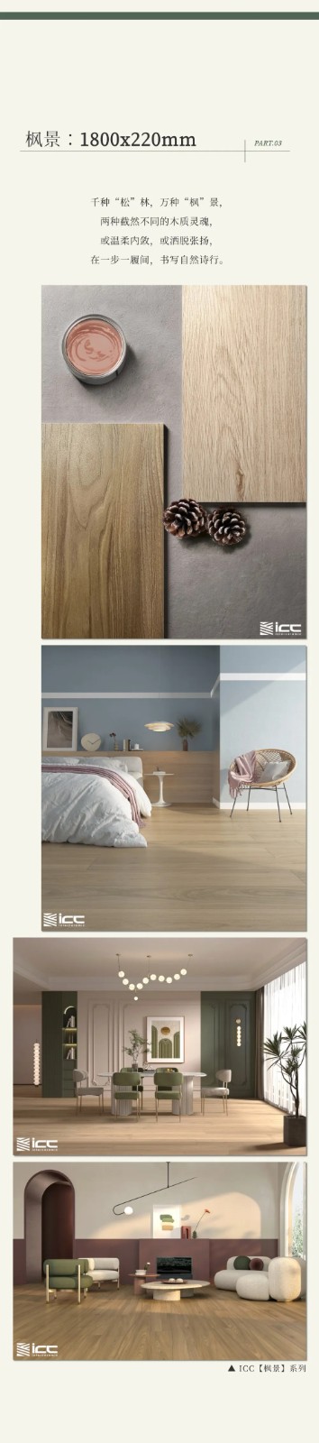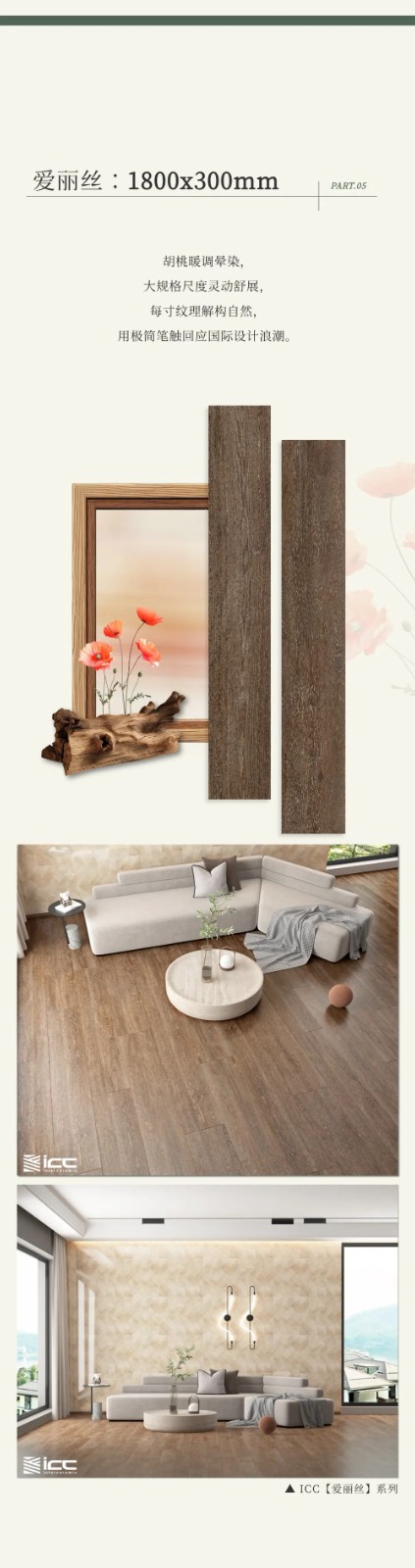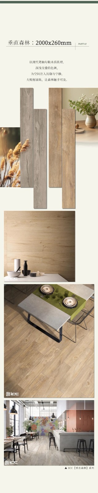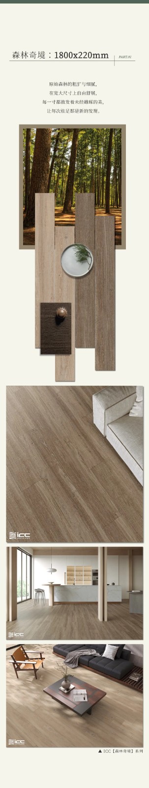 突破常规尺寸!ICC大规格木纹砖,重塑自然美学 𝐈𝐂𝐂 𝐖𝐎𝐎𝐃 𝐒𝐓𝐘𝐋𝐄 日期:2025-08-19 点击: 本文链接: http://http://www.icctc.cn/content/?2880.html 上一条 ICC岩板新品【星弧】:几何艺术与极致工艺的碰撞,开启装饰新美学 ICC New Slab Eterna deco 下一条 ICC新品【卡拉卡塔金】:自然雕琢的艺术,灵动雅致 ICC New Product Calacatta Gold